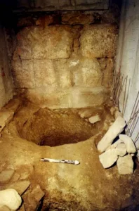 Στη δυτική πλευρά του αύλειου χώρου βρέθηκε φρεατοδεξαμενή, η οποία περιέπεσε σε αχρηστία και γέμισε με μεγάλη ποσότητα κεραμικής απόθεσης (κυρίως, αγγεία συμποσίων) του τελευταίου τετάρτου του 4ου αιώνα πΧ.