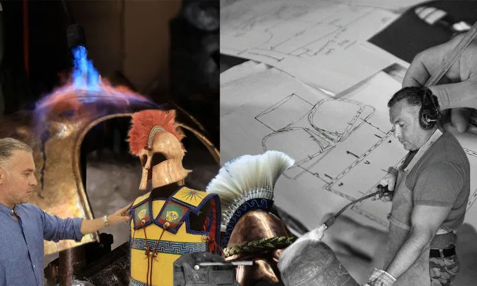 Ομηρικά ξίφη, αθηναϊκές πανοπλίες, και ο θώρακας του Μεγάλου Αλεξάνδρου -στο πιο πιστό αντίγραφο που μπορεί να γίνει- είναι μερικές από τις δημιουργίες του, στο εργαστήρι που έχει διαμορφώσει στην περιοχή των Σπατών. Άλλωστε, όπως λέει και ο ίδιος ο δημιουργός, είναι αδύνατον να φανταστούμε τις Ομηρικές και ιστορικές προσωπικότητες της ελληνικής αρχαιότητας χωρίς τις πανοπλίες τους, που βρίσκονται παντού στην ελληνική τέχνη, όπως σε αγγεία, σε ανάγλυφα και σε αγάλματα.