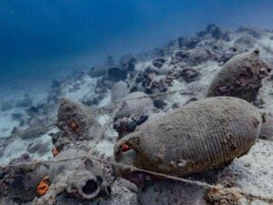 Εντυπωσιακά είναι τα ευρήματα ενός ναυαγίου του 5ου – 6ου αιώνα μ.Χ., που έχει εντοπιστεί στο ακρωτήριο Άσπρος Κάβος, στους Φούρνους.