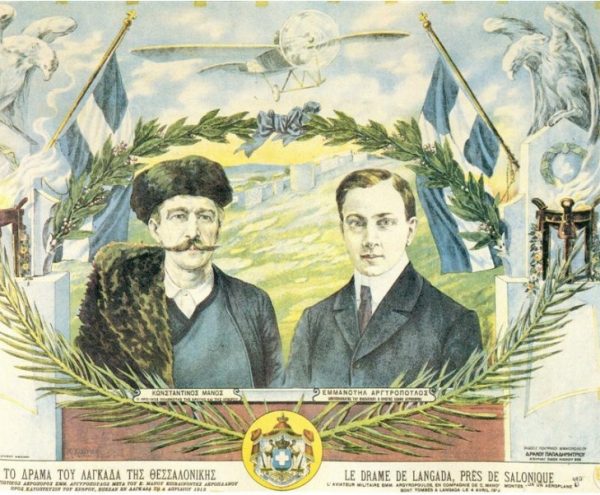 Ο Κωνσταντίνος Μάνος απεβίωσε στις 4 Απριλίου 1913, όταν το αεροσκάφος στο οποίο επέβαινε, ένα μονοπλάνο Bleriot XI με χειριστή τον ανθυπολοχαγό Εμμανουήλ Αργυρόπουλο (τον πρώτο έλληνα αεροναύτη, κατά τον Ελευθέριο Βενιζέλο), κατέπεσε κατά την εκτέλεση αναγνωριστικής πτήσεως στην περιοχή του Λαγκαδά Θεσσαλονίκης εξαιτίας μηχανικής βλάβης και εν μέσω σφοδρής κακοκαιρίας.