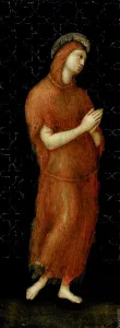 Αρχικά αποτελούσε μέρος ενός μικρού τρίπτυχου που πιθανότατα χρησιμοποιούνταν για προσωπική προσευχή. Η απεικόνιση της Μαρίας Μαγδαληνής είναι ασυνήθιστη. Δεν κρατά το παραδοσιακό μυροδοχείο, σύμβολο της αγιοσύνης της, αλλά φορά έναν τρίχινο χιτώνα, ένδειξη της αποποίησης των κοσμικών απολαύσεων και της αφοσίωσής της στη μεταμέλεια.