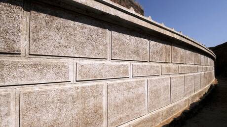Εκείνο που αξίζει να τονιστεί και προκύπτει μέσα από τη μελέτη που εκπόνησε ο αρχιτέκτονας του μνημείου, είναι ότι η κατασκευή του μαρμάρινου περίβολου έγινε από δυο διαφορετικά συνεργεία. Και τα δυο ξεκίνησαν από κοινό σημείο αλλά διέγραψαν διαφορετικές κατευθύνσεις: το ένα από την ανατολική πλευρά προς τη δυτική και ένα άλλο από τη δυτική προς την ανατολική. Χρειάστηκαν δυόμιση περίπου χρόνια προκειμένου ολόκληρος ο περίβολος να επενδυθεί με μάρμαρο.