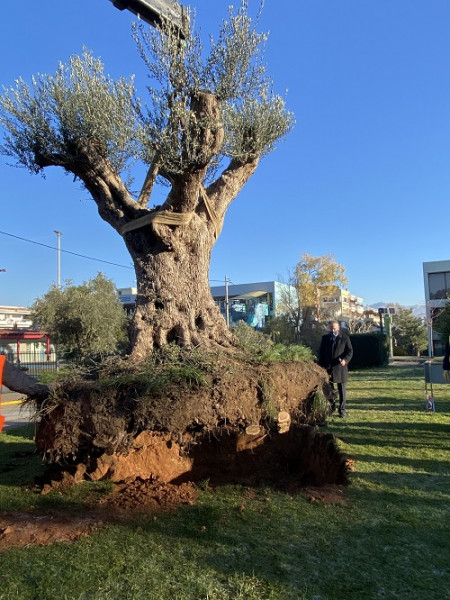 Η εταιρεία που επεκτείνει το σιδηροδρομικό δίκτυο στην Ελλάδα, απαλλοτρίωσε ελαιώνα και με χρηματοδότηση του Πράσινου Ταμείου και προσφέρθηκε η επιβλητική ελιά, το πολύτιμο αυτό δώρο της φύσης που αποτελεί μια ζωντανή κληρονομιά.