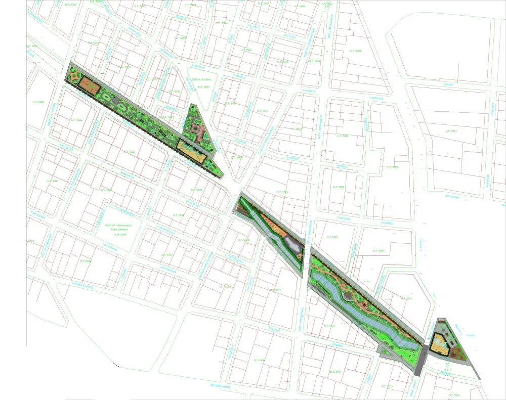 Μεταξύ άλλων δημιουργούνται πλατείες, παιδικές χαρές, ένας περιφραγμένος χώρος που θα λειτουργεί ως πάρκο σκύλων εμβαδού 645 τ.μ, μια πίστα ποδηλασίας (pump track), πίστα skate, χώρος πινγκ-πονγκ ένα μεγάλο πάρκο με πυκνή φύτευση, χλοοτάπητα και διαδρόμους προσπέλασης από διάτρητους κυβόλιθους, μια περιφραγμένη παιδική χαρά εμβαδού 685 τ.μ και ζώνες πρασίνου.