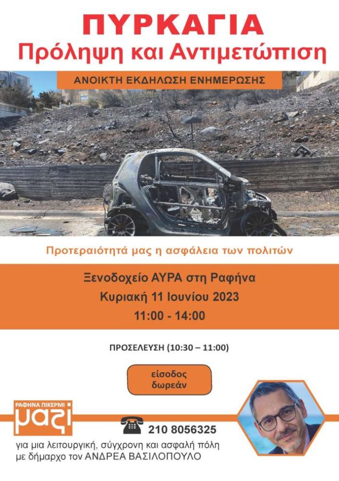 Δεν πρέπει να λείψει κανείς απ’ την ημερίδα «ΠΥΡΚΑΓΙΑ Πρόληψη και Αντιμετώπιση» αύριο Κυριακή πρωί στις 11 στο ξενοδοχείο Αύρα.