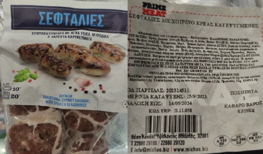 Συγκεκριμένα ο Φορέας και ειδικότερα η Περιφερειακή Διεύθυνση Κρήτης, κατά τη διενέργεια ελέγχων στο πλαίσιο του Προγράμματος «Επίσημος Έλεγχος Μικροβιολογικών Κριτηρίων Ασφάλειας Τροφίμων» έτους 2023, προέβη σε δειγματοληψία του προϊόντος, «ΣΕΦΤΑΛΙΕΣ ΜΕ ΧΟΙΡΙΝΟ ΚΡΕΑΣ ΚΑΤΕΨΥΓΜΕΝΕΣ», με αριθ. παρτίδας: 202314511 και ημ. ανάλωσης έως: 14.09.24, που παρασκευάζεται από την εταιρεία «Χ. ΜΙΧΑΣ ΑΕΒΕ» στη Θέση Κανάλι, Υψηλάντη Βοιωτίας.