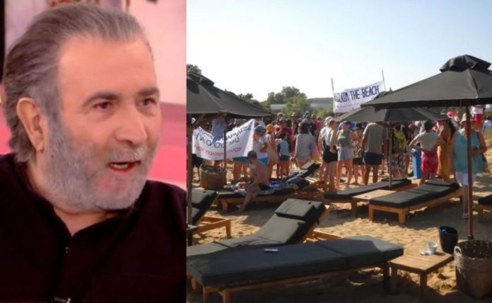 «Παρούσα και η αστυνομία που την είχαμε καλέσει για την αποφυγή κάθε παγίδας. Άπλωσαν οι φίλοι μας όλοι τις πετσέτες μπροστά στις πολυθρόνες ή πιο πέρα και κολύμπησαν» έγραφε ο κ. Γεωργούσης στην ανάρτησή του την περασμένη Κυριακή.