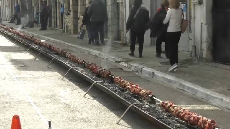 Για την παρασκευή του χρειάστηκαν 800 κιλά κρέατος και πολλές ώρες προετοιμασίας και ψησίματος, για να απολαύσουν οι επισκέπτες της Αμφίκλειας το μεγαλύτερο κοντοσούβλι της Ελλάδας.