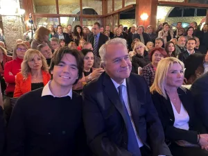Ο Μάκης συνοδευόταν απ’ τη σύζυγο και τον γιο του. Τα δύο πιο κοντινά του πρόσωπα ακολουθούν ήδη τα βήματά του, με τη σύντροφό του στο δήμο Αθηναίων με τον Κώστα Μπακογιάννη και τον γιο του να κάνει τα πρώτα του βήματα στην πολιτική. Στη δεύτερη φωτό ο Φρέντυ Μπελέρης ανάμεσα στη σύζυγο Βορίδη και πολιτεύτρια της Ν. Δημοκρατίας.