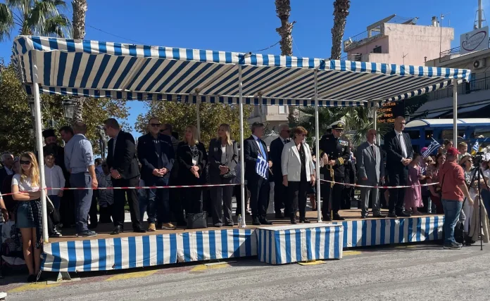 με την εξέδρα των επισήμων εντυπωσιακά ολιγοάνθρωπη και χωρίς εκπροσώπους κομμάτων και Περιφέρειας, αν αναλογιστεί κάποιος περασμένες εποχές όπου υπήρχε το αδιαχώρητο.