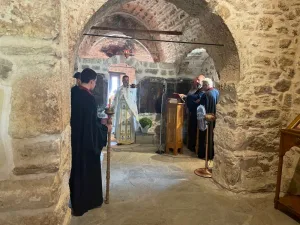 Λιτή κι απέριττη η λειτουργία, σ’ ένα χώρο που ιστορία ετών είναι χαραγμένη στους πρόσφατα αναπαλαιωμένους τοίχους, με τις υπέροχες τοιχογραφίες στο πέτρινο τέμπλο του ιερού, γεγονός που σε γεμίζει θρησκευτικό δέος. Η βοήθεια της Παναγιάς να είναι δίπλα στον καθένα μας ξεχωριστικά.
