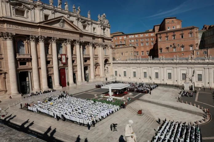 Αδιανόητο περιστατικό στο εσωτερικό της Βασιλικής του Αγίου Πέτρου — ένας άνδρας πέρασε τα προστατευτικά κιγκλιδώματα και ούρησε επί της Αγίας Τράπεζας, λίγα μόλις μέτρα από το περίφημο μπαρόκ κιβώριο του Τζαν Λορέντζο Μπερνίνι.